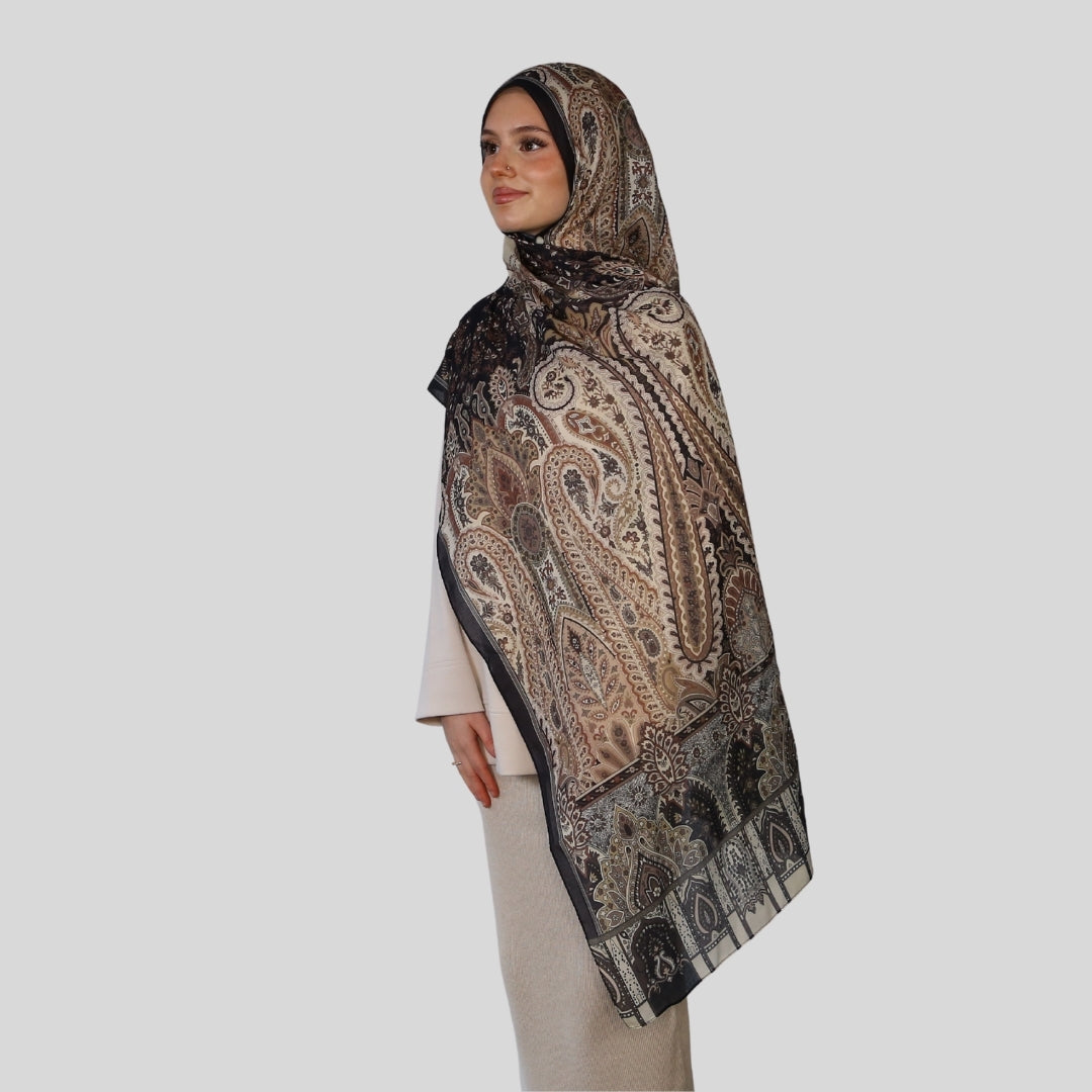 Das Orient Sultan Tuch überzeugt mit einem edlen, orientalisch inspirierten Design und hochwertiger Verarbeitung. Es ist blickdicht, atmungsaktiv und leicht formbar – ideal für Alltag, Arbeit oder besondere Anlässe.