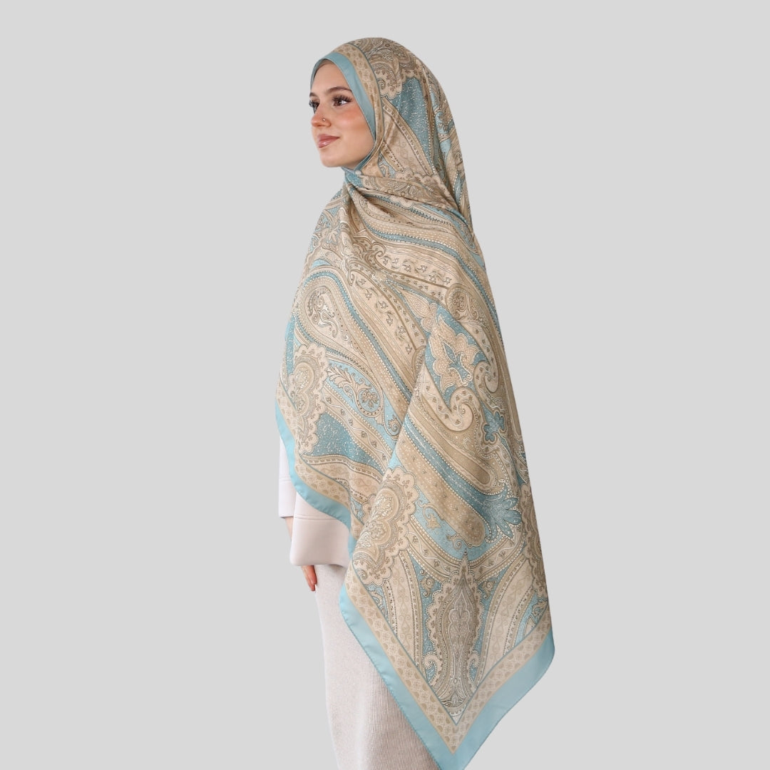 Dieser Hijab besteht aus weichem, atmungsaktivem Stoff und bietet ein angenehmes Tragegefühl. Er ist blickdicht, leicht formbar und für verschiedene Anlässe geeignet. Das Tuch zeichnet sich durch ein hochwertiges orientalisches Muster aus, das dem Design eine edle Note verleiht.
