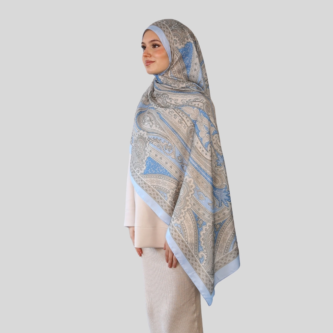 Dieser Hijab besteht aus weichem, atmungsaktivem Stoff und bietet ein angenehmes Tragegefühl. Er ist blickdicht, leicht formbar und für verschiedene Anlässe geeignet. Das Tuch zeichnet sich durch ein hochwertiges orientalisches Muster aus, das dem Design eine edle Note verleiht.