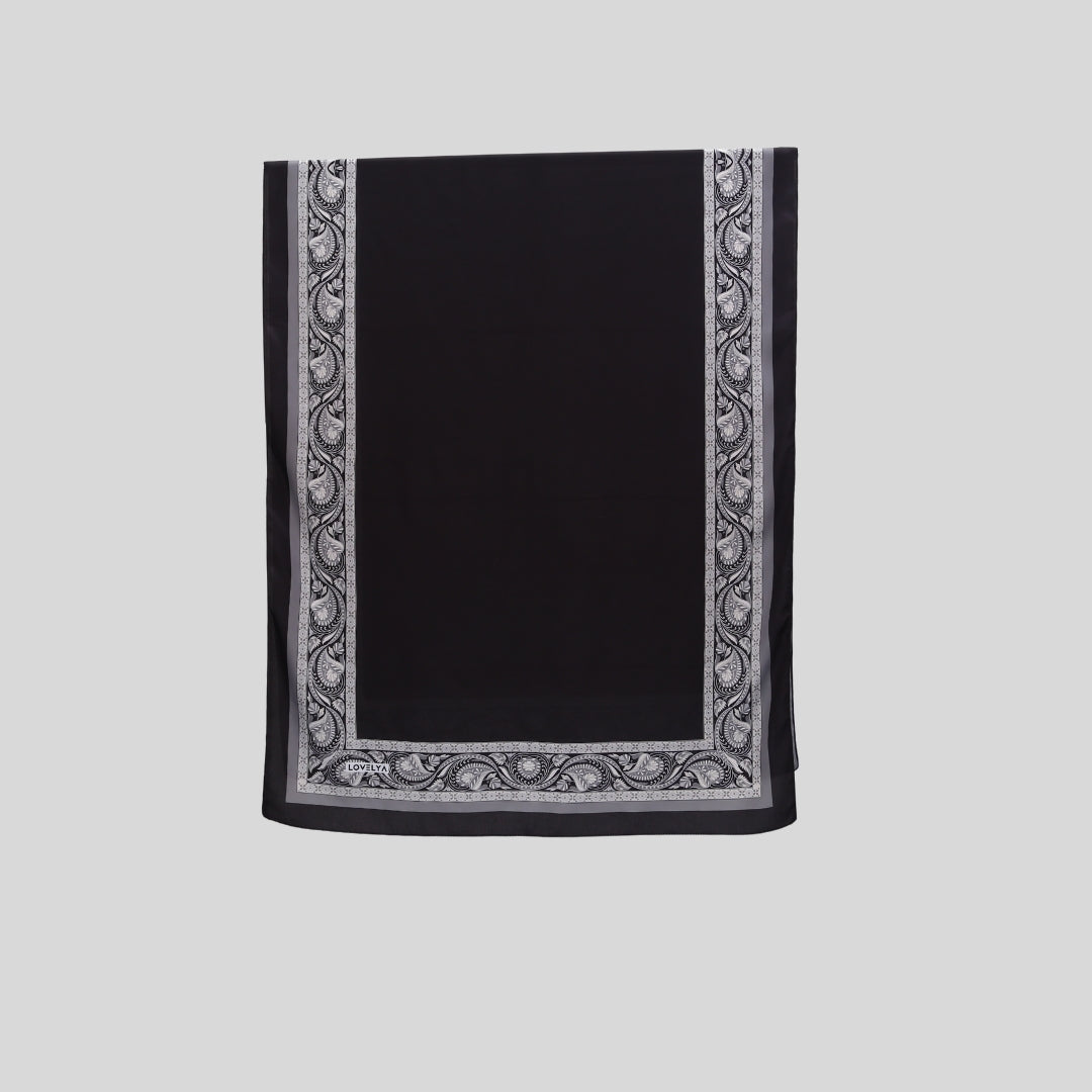 Hochwertiger Stoff mit orientalisch inspiriertem Muster, das dezent an den Rändern platziert ist. Der Schal ist blickdicht, weich und leicht, was ihn besonders angenehm zu tragen macht. Ideal für alle Jahreszeiten geeignet und vielseitig kombinierbar – als Hijab, Schal oder modisches Accessoire.