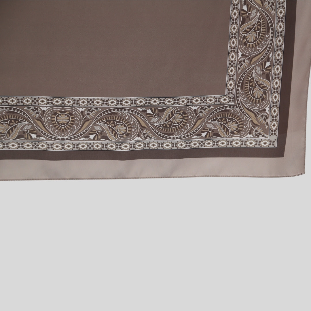 Hochwertiger Stoff mit orientalisch inspiriertem Muster, das dezent an den Rändern platziert ist. Der Schal ist blickdicht, weich und leicht, was ihn besonders angenehm zu tragen macht. Ideal für alle Jahreszeiten geeignet und vielseitig kombinierbar – als Hijab, Schal oder modisches Accessoire.